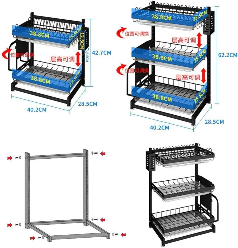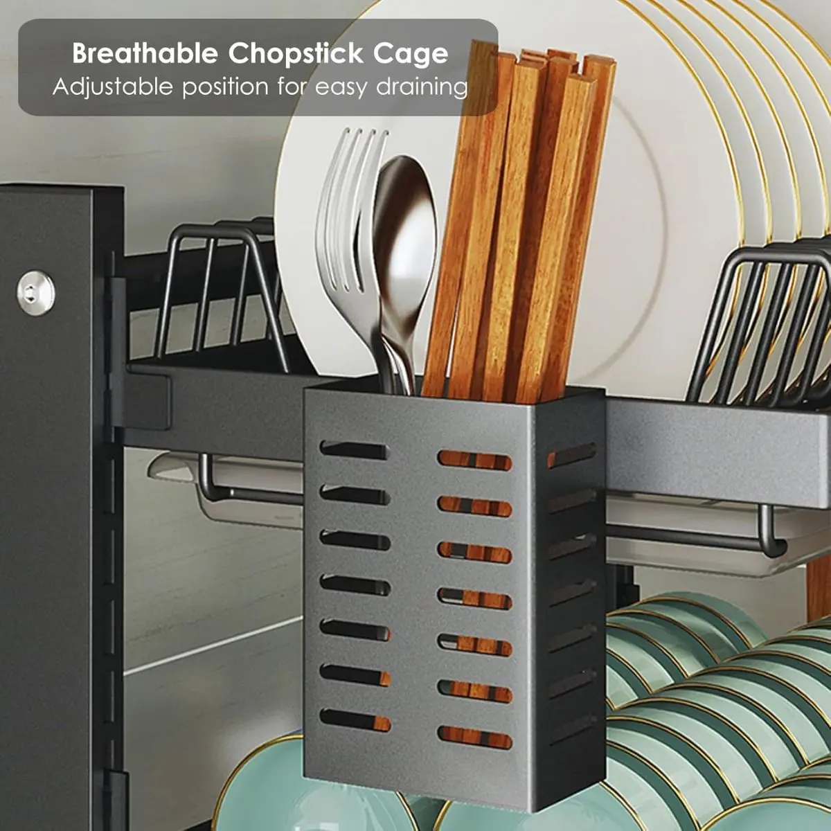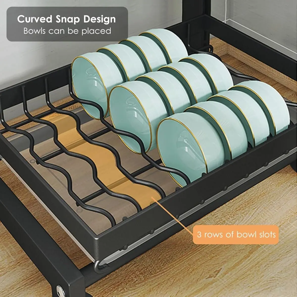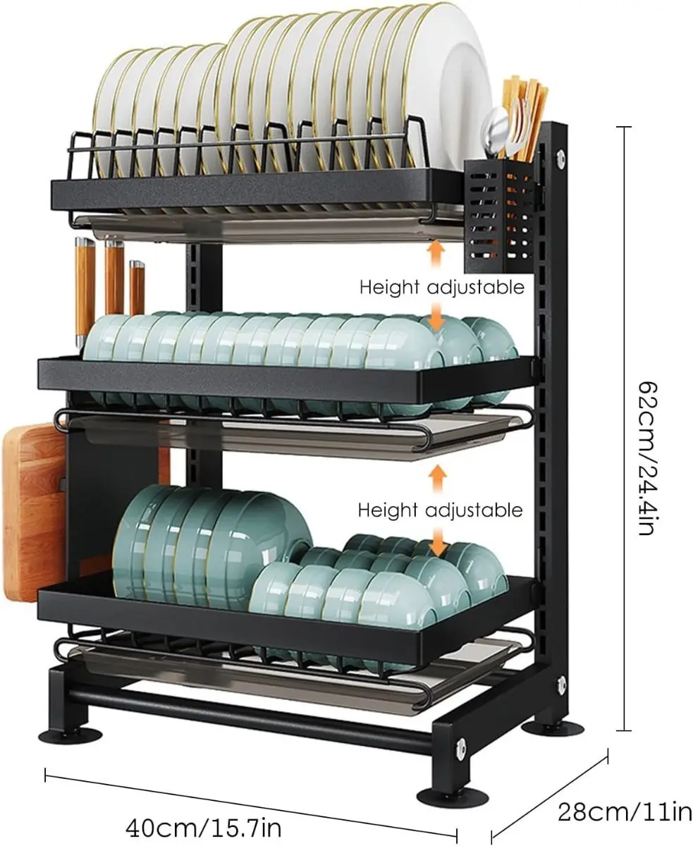 - Triple nivel de almacenamiento: permite secar platos, bowls, tazas y utensilios en un solo lugar.